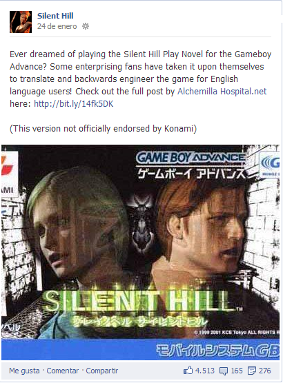 Original 2001 GBA game released as Silent Hill Play Novel. It was an adaptation of the first Silent Hill game in the form of an interactive graphic novel(choose your own adventure style.. It was never released outside japan territory.